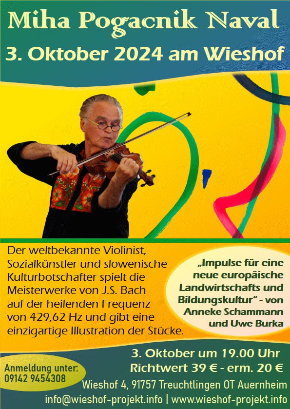 Der Violinvirtuose, Kulturunternehmer, Sozialkünstler und Kuturbotschafter der Republik Slowenien, Miha Pogacnik, kommt auf den Wieshof!
